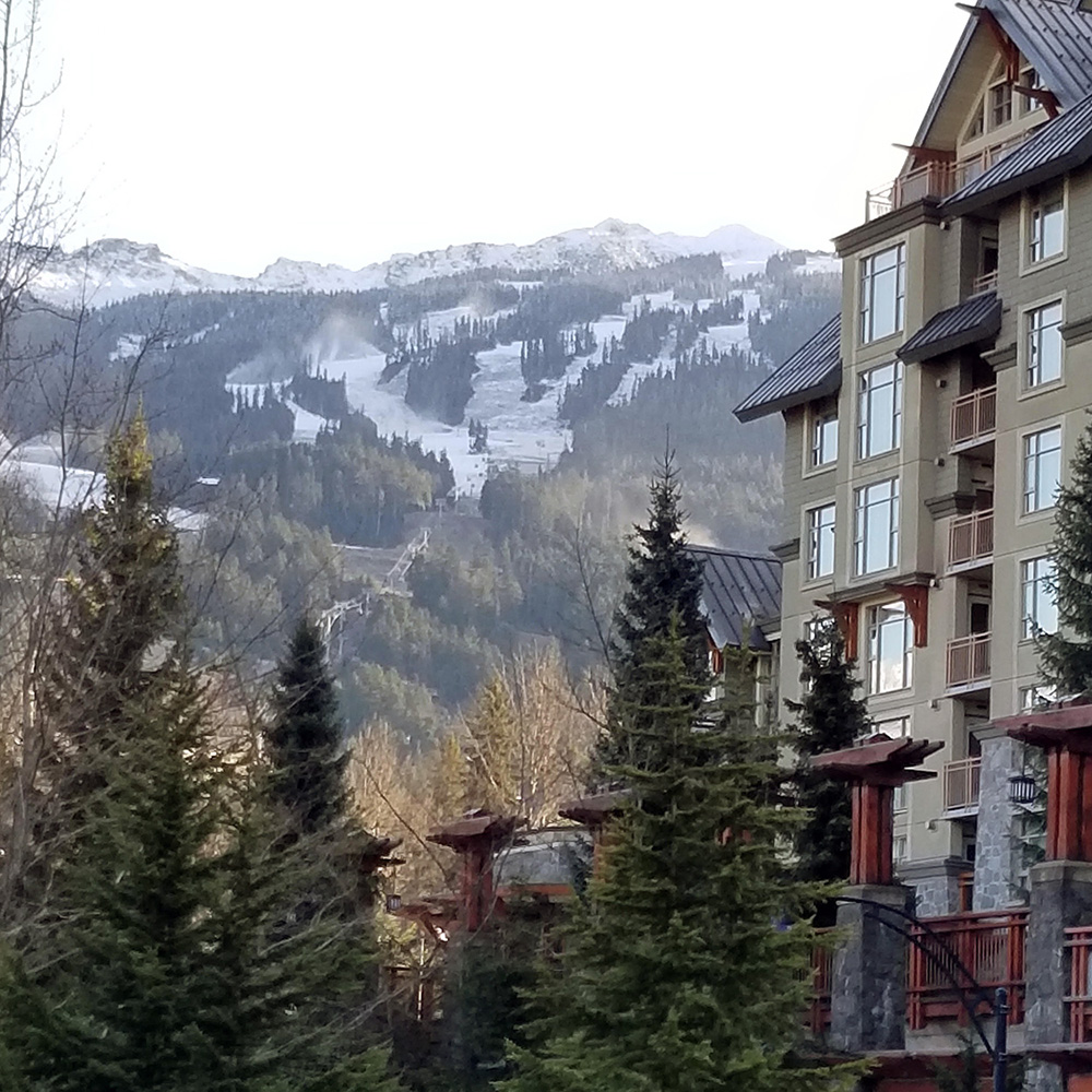I took some time to explore Whistler Village which reminded me a bit of Aspen, Colorado. The Fairmont is the most famous hotel in Whistler, and it lived up to its reputation. The lobby was dazzling with two dozen beautifully decorated Christmas trees! The Westin was delightful as well, subtly tucked into the hillside so it blends with the natural environment.